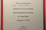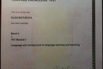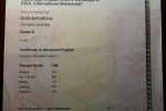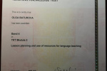 Сертификаты: Certificate of Advanced English (CAE) (2015 г.); Teaching Knowledge Test (TKT), Modules 1-3 (2018 г.).
