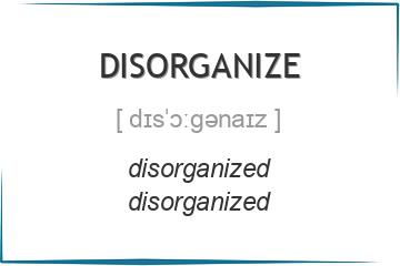 Английский глагол disorganize является правильным глаголом. Его вторая и третья форма образуются при помощи окончания -ed.